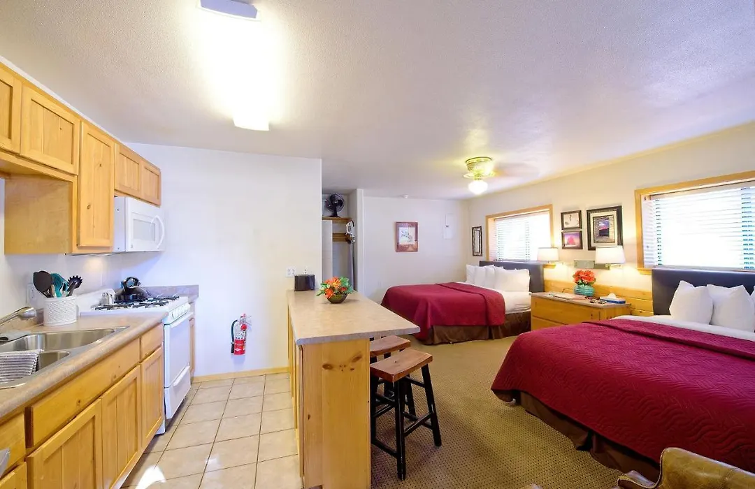 Con vistas al patio, algunas habitaciones del hotel Sitzmark Sports Lodge ofrecen una chimenea de piedra con un escritorio. Además, el hotel cuenta con servicio de tetera/cafetera y una caja fuerte. Los cuartos de baño privados cuentan con secador de pelo y una secadora.